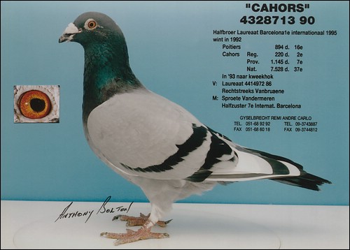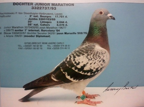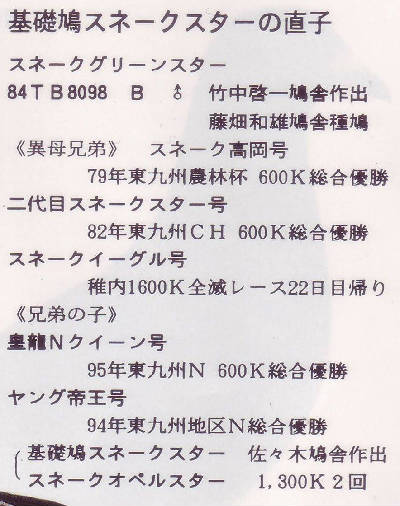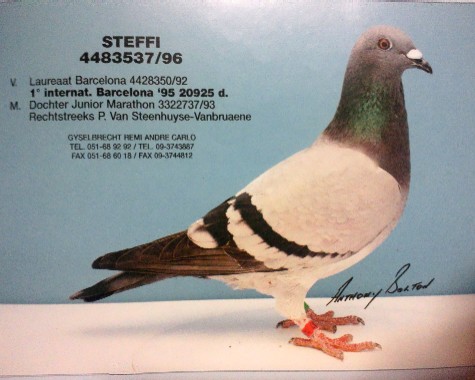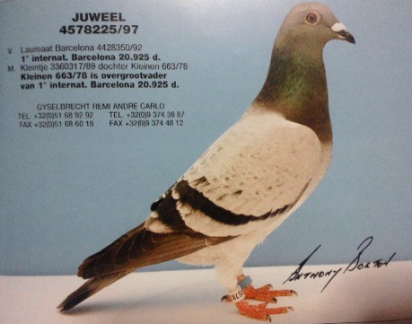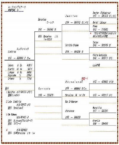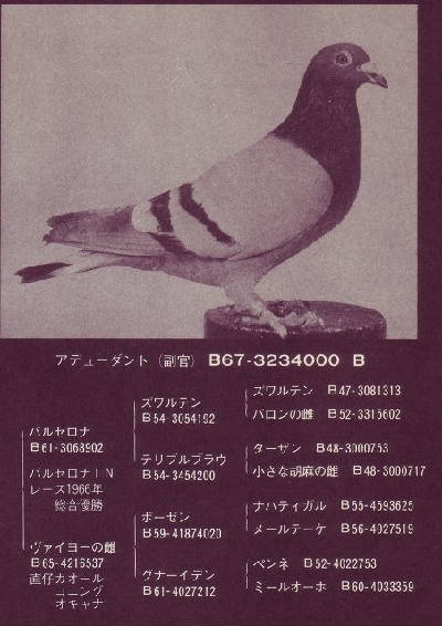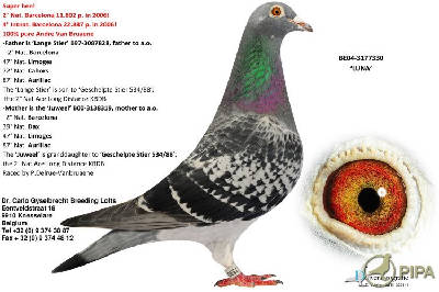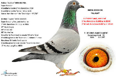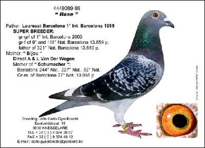 【スネーク・ヴェロニカ号】バルセロナN 1549km3回2回入賞に、【ロバート号】バルセロナN 1549km3回入賞を、全兄妹配合の直子作出して、とばして、【ヴェロニカII号】バルセロナN 1549km2回入賞しているのです。
