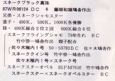 ■スネーク作出台帳 ヴェロニカ号【スネーク・光輝キング号】スネーク系五代目基礎鳩【灰刺し雄×スネーク系系統異血基礎鳩【【スネーク・ヴェロニカ号】長距離胡麻雌