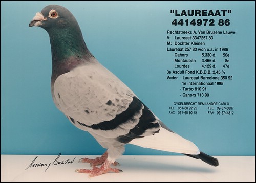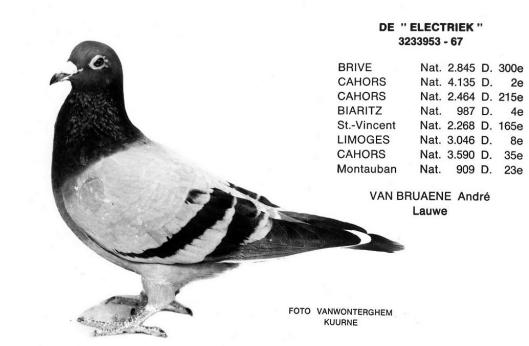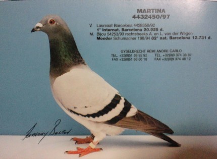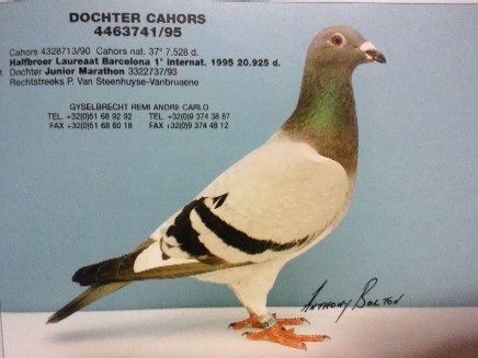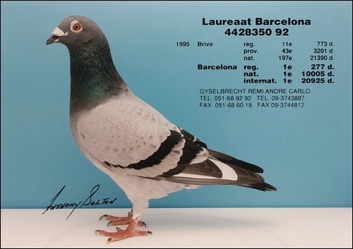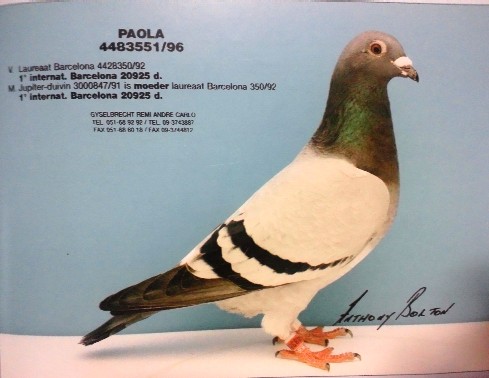 【スネーク・ヴェロニカ号】バルセロナN 1549km3回2回入賞に、【ロバート号】バルセロナN 1549km3回入賞を、全兄妹配合の直子作出して、とばして、【ヴェロニカII号】バルセロナN 1549km2回入賞しているのです。