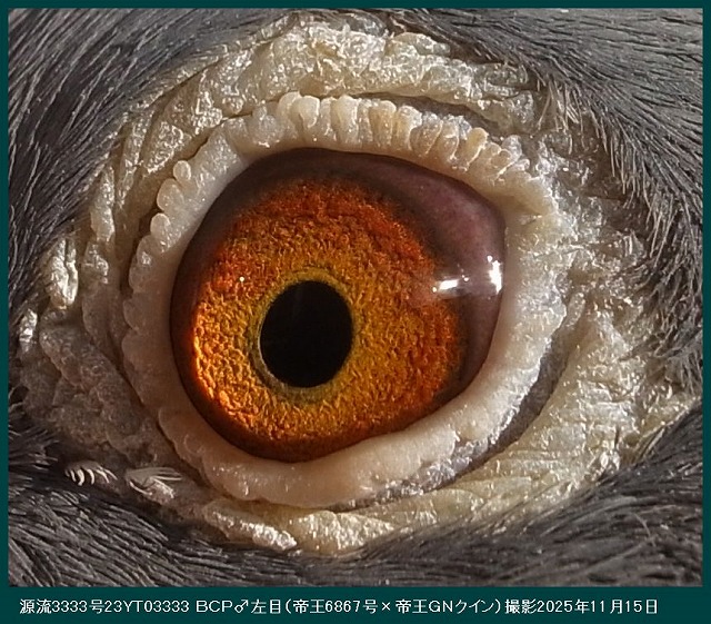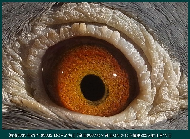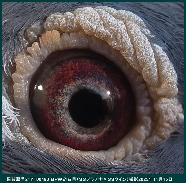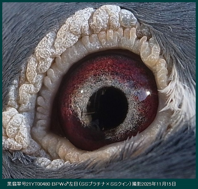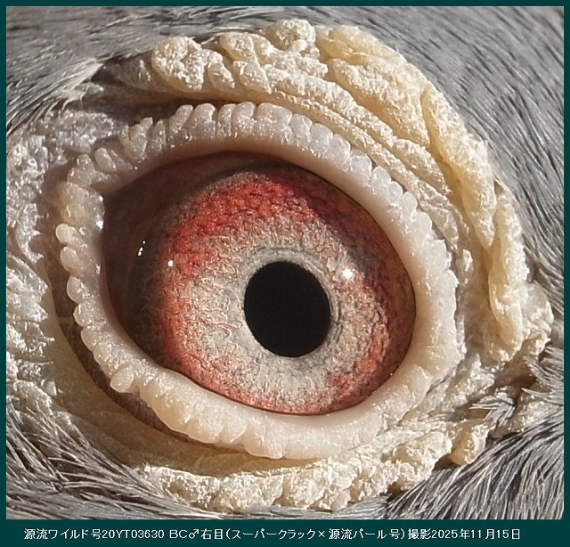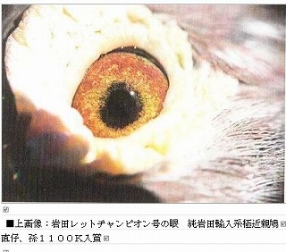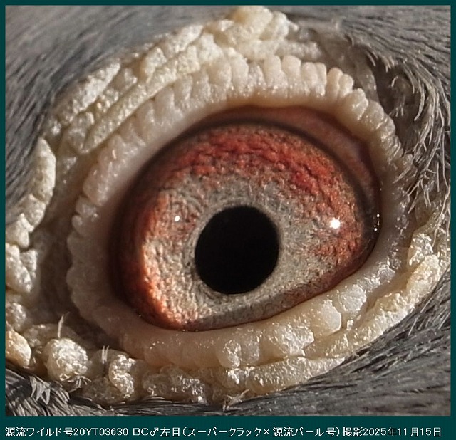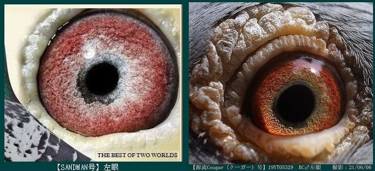 ■ この目の写真は、ボブ・フレミングの意見です。「究極の繁殖目」■ 「究極の繁殖目」。シドニーオーストラリアのビルホールデンが所有。この鳥は、これまでにオーストラリアで開催された最初のアイサインショーの勝者でした。私の下で他に類を見ない30ポイントを獲得し、完全な兄弟が同じショーで28ポイントで2番目に走りました。鳥はまた、150から600マイルまでのすべての距離で15のコンバインを獲得しました。これらはあらゆる条件で飛行しましたが、それでも家族の質は他のどこよりもはるかに優れていました。この鳥の繁殖記録も非常にユニークであり、この写真が撮影された時点で所有者のためにすでに15人のコンバインの勝者を飼っていましたが、このサイトにこの写真を投稿した結果、後で知った鳥は繁殖を続けており、それが生み出したCombineの最終的な勝者数は30以上でした。これらの受賞者は、オーストラリア最大のコンバインから来ました。コンバインは、1レースあたり平均8,000から10,000羽の鳥が飛んでおり、13種類のFALCONSのすべてのガントレットを通ります。私が言われている家族の起源は、サバージ・バーカーのFバートン家族であり、オーストラリアで間違いなく最高の鳥でした。彼らは間違いなく最高の目を持っています。この目は真珠の目です。両方の目の真珠色のクラスターは、小さなクラスターと大きなクラスターの複数の表示として表示され、いくつかの個々の顔料粒がいくつかの周りに漂い、他のいくつかは位置が固定されています。クラスターが盲点または目の欠陥であると信じる人には、この写真をよく見て、あなたの考えが正しければ、この鳥がどのように飛んだかを説明してください。私は世界中で何千ものクラスターを見てきましたが、これらの自然の奇跡の飛行記録は常に同じです。優れた。P S.彼らはまた、「目印のない人」でもあります。(サイト□ Indeian Highfliers□より引用、※google翻訳ですのでそのつもりで読んで下さい。)
