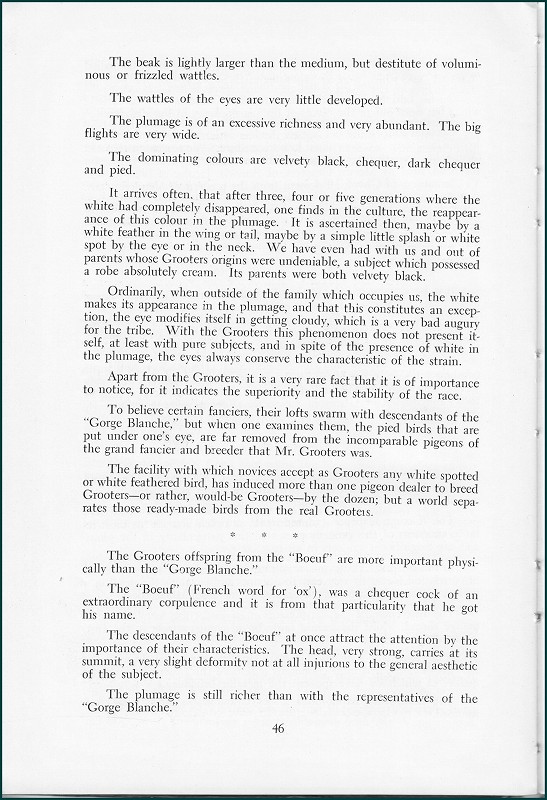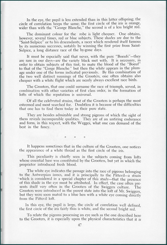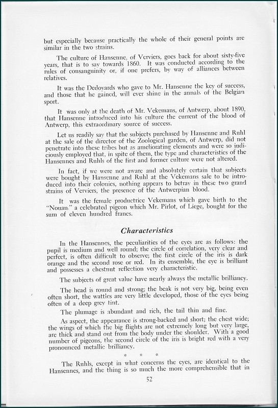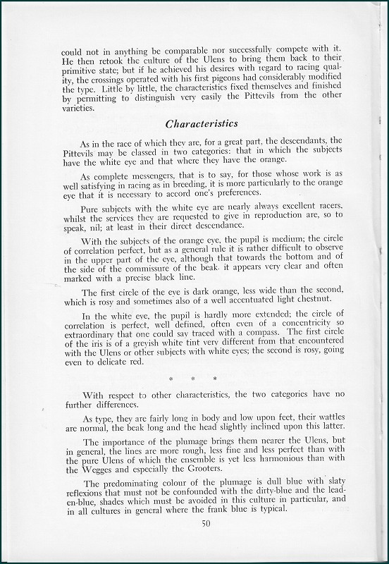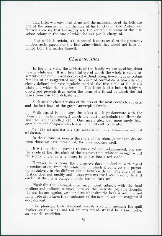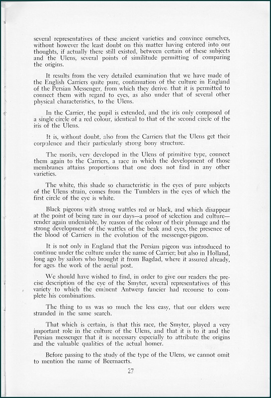 この点では、今日でも、先に述べたいずれかの系統を引き継いだ鳩を基礎としていることで有名な多くの鳩舎で、私たちが何年も前に知っていた、紛れもなく純粋なウラン[Ulens]の生きた肖像である鳩を賞賛できることは事実である。