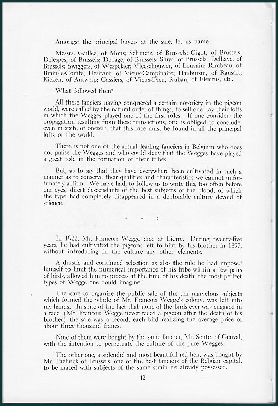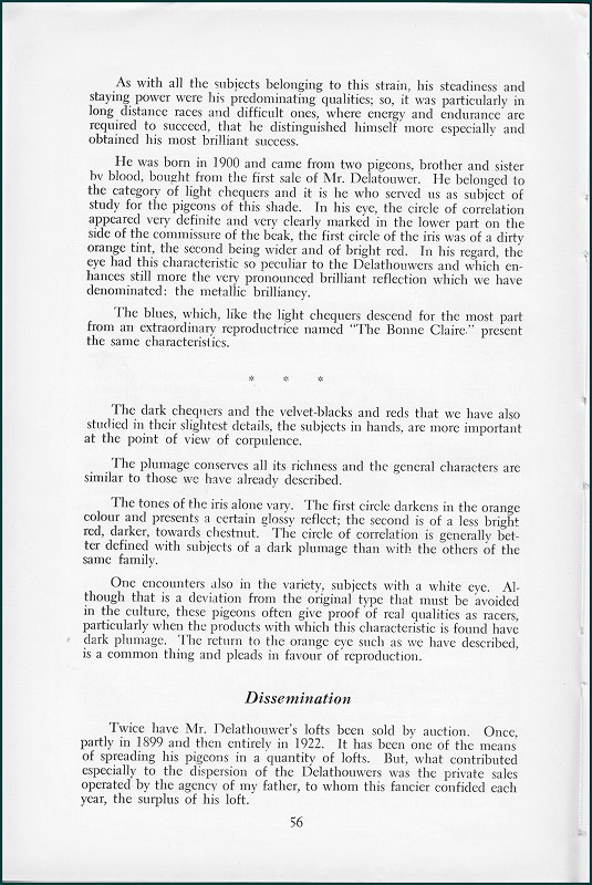ベルギー全土、さらには海外にまで高貴で寛大な血を広めることに多大な貢献をしたデヴァレリオラ、クラセンス、ドパージュ[the Devaleriola, Classens and Depage]の傍らには、同じように普及に大きな貢献をした、忘れてはならない愛鳩家たちがいる。