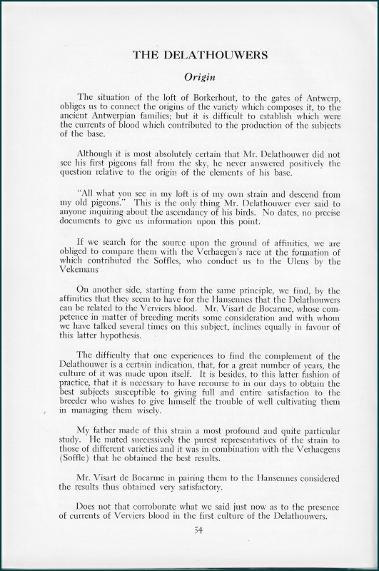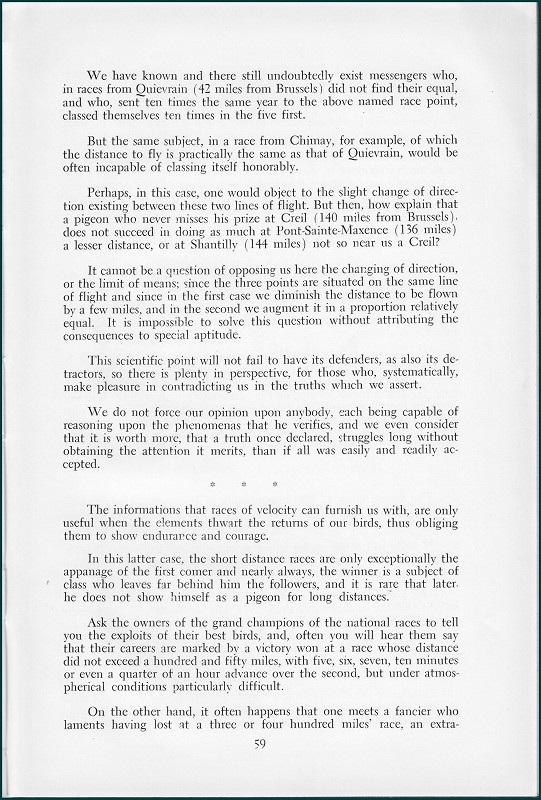 例えば、ウックル[Uccle]のベルクマン[Berckmans]とノイエンツ[Neuenz ]、ポン・ア・セル[Pont- a-Celles]のカイシン[Kaisin]、ワンフェルセ[Wanfercee]のヘナンとセヴラン[Henin and Sevrin]、モンサン・ギベール[Mont-Saint-Guibert]のボレなど、よくできた鳩舎の群れの中では、誰でも我々の言葉をコントロールできるだろう。