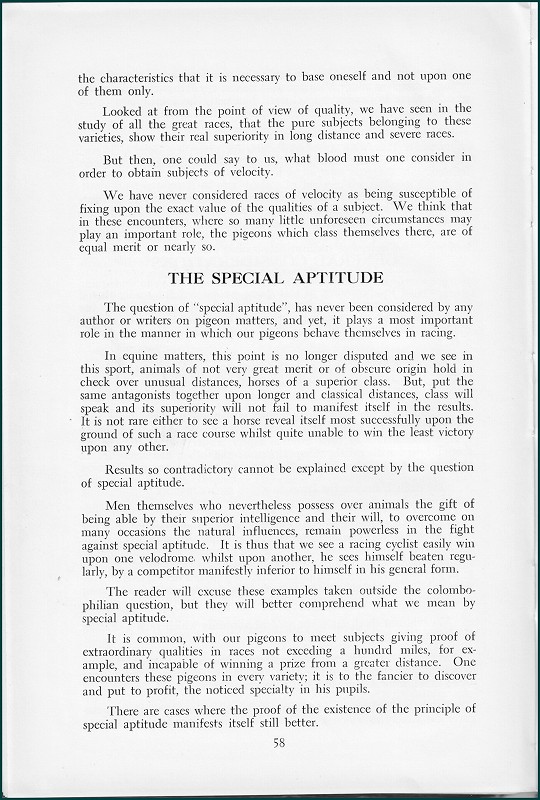 このマニアが得た被写体の優秀さは、すぐに認識されたので、我々が実際に所有している鳩のレーサーはすべて、その血管の中に その血が流れていると断言しても差し支えないだろう。