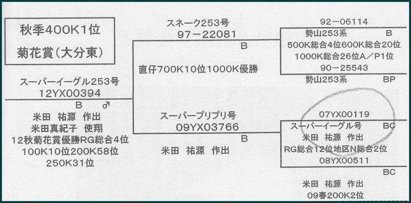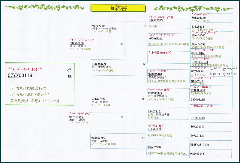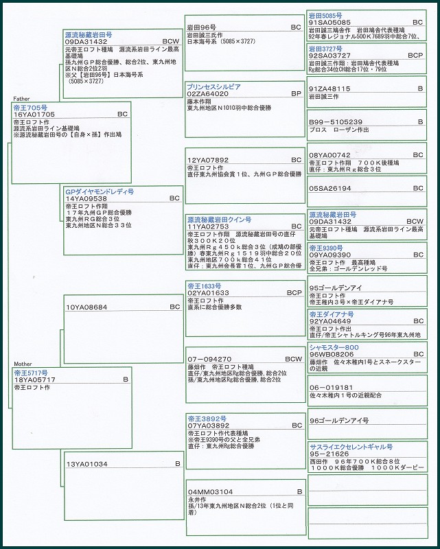 ■父:帝王705号(源流秘蔵岩田号×1000k総合優勝GPダイヤモンドレディ号※源流秘蔵岩田号の直孫)