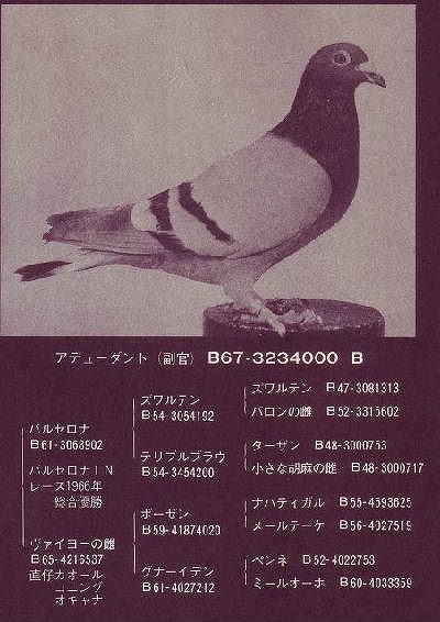 知人の宮井様が稚内GV(実距離1,365K)総合優勝いたしました。 20-53784 B ♂ 5歳です。 今までに900KGC総合13位他に900kを飛んでおります。