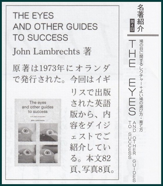 私自身としては出来るだけ解かり易く、テーマでもある作出のセオリーを展開してきたのですが問い合せの内容は、もっと初歩的なことが多かった。でも、なによりも感じたのは。読者の皆さんが鳩に熱心であることです。連載記事中には私の自宅の電話番号など載せていないのに、調べて電話をかけてくる人も少なくなかったですね。