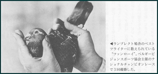 また。「八大銘鳩」というのは総て選手鳩です。これらの鳩から、当たり前のようにアドリアーンは銘鳩を作り上げていく。選手鳩からすごいトリを作るには私の交配セオリーから言いますと優れた種嶋を作るための種鳩が必要となってきます。それを持っているからこそ出来ることでありますか、容易に真似の出来ることではありません。また、アドレアーンが科学的に交配論を考えていたわけでもなかった。生まれつき身についていた、まさに鳩の天才でした。自身のセオリーか確立される中で偉人なる愛鳩家アドレアーンヘの私の思いは深い感謝の念へと繋がっていきました。